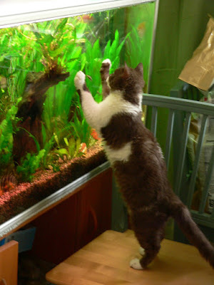 Hyppy sujuu joten kuten - hyppää hyvin, istuukin, mutta tästä takaisin se perusasento on vähän hakusessa. Noudossa ei olla pahemmin edistytty, mutta kaipa se siitä. Treenattiin taas peilin avulla ja tuo sen kyllä n. metrin puolentoista päähän minusta. Nostaa sivulta, mutta ei pidä pitkään. Sen sijaan kun treenasin sivummalla sitä, että nostaa kapulan minulle edestä (istuin), pitää jo paremmin - tuntui jopa hieman hoksaavan, mitä tässä haetaan. Treenitä vaan. Ainakaan ei nyt paineistu noudon treenaamisesta ja se on hyvä.